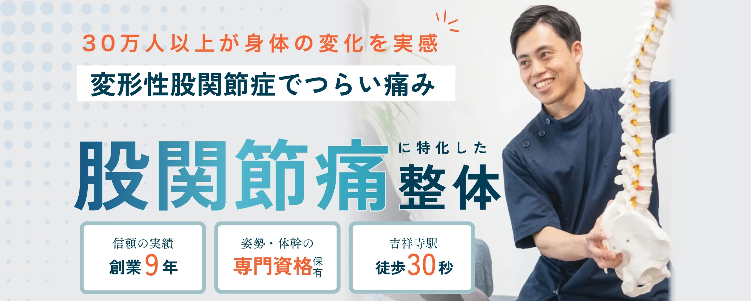 股関節痛は、歩く・立つ・座るといった日常動作の中で、股関節に負担がかかりやすい状態が続くことで起こる場合があります。骨盤や背骨のバランスが崩れると、体重のかかり方が左右どちらかに偏りやすくなり、その影響が股関節に集中することがあります。